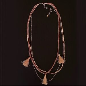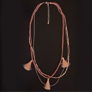 Tasseled Tassel Beaded Statement Multi Layer Boho Necklace in Rose Gold