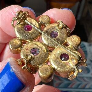 Vintage Czech Glass Color Changing Blue Purple Gold Filigree Overlay Brooch