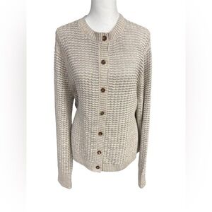 Lafayette 148 New York Textured Stitch Crewneck Linen Silk Blend Cardigan XL