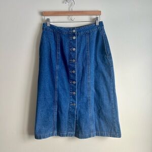 Denim Button-Front A-Line Midi Skirt w/ Pockets 29"L