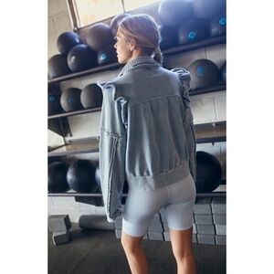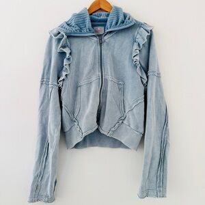 Light blue ruffle zip up jacket from Free People Movement. Size XS. Two small spots, pictured, but otherwise EUC - the So Cool jacket