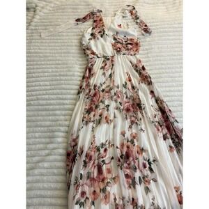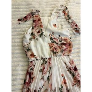 Premier Amour Floral Halter Pleated Maxi Dress White Pink Size 4