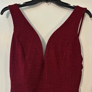Chic deep red maxi dress. Sleeveless with a flattering V-neck. Perfect for elegant occasions.