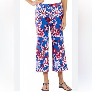 Jude Connally size large Trixie cropped twirling peacock cobalt pull on pants. Elastic waist. Wide leg. Super soft and stretchy. Great bright fun colors. Blue, white, and red. Great for vacation. NWT.