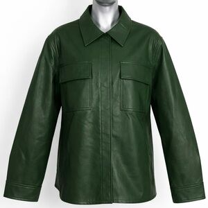 Mystree Dark Green Leather Shirt Jacket