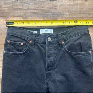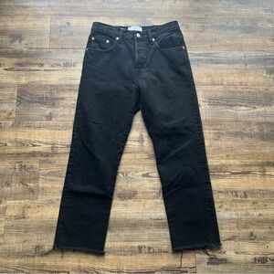 MNG Havana Women’s Black High Rise Straight Leg Button Fly Jeans Frayed Hem Sz 4