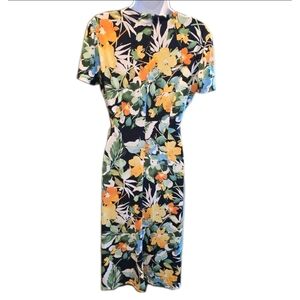 164 Maggy London Black Yellow Orange Floral Midi Dress