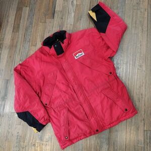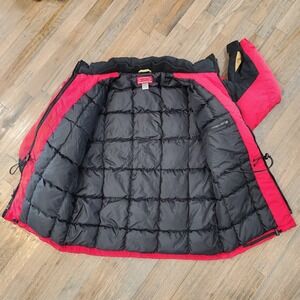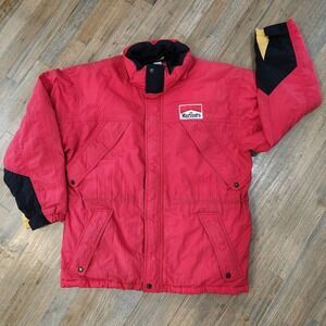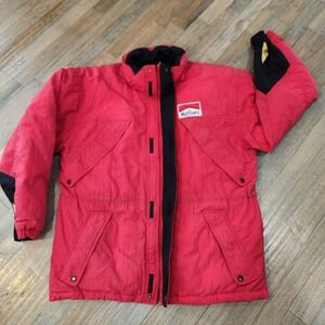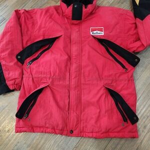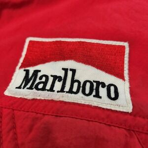 VTG 90s Marlboro Red Country Store Red Down Jacket Coat Logo Patch Size Medium