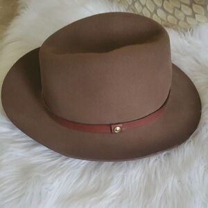 Elegant brown felt hat by Rag & Bone. Features a subtle leather ribbon detail.