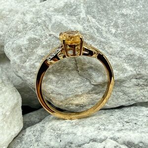 Elegant and timeless, this Brazilian Citrine ring showcases a beautifully faceted oval center stone glowing in warm golden champagne tones. The citrine radiates brilliant honey and amber flashes depending on the light — classic November birthstone energy.
