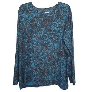 This is a Chico's Blue & Black Jersey Knit Animal Print Long Sleeve Blouse Size 3 (XL)