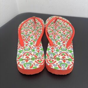 Tory Burch Poppy Red Legacy Paisley Flip Flops Womens Size 9M Sandals Multicolor