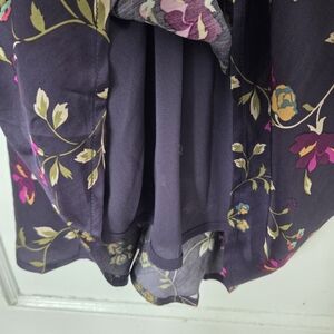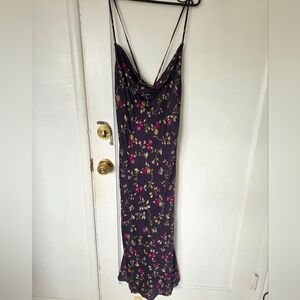 New with tags Satin slip midi dress with purple, gold, green floral print