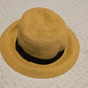 Elegant Scala straw hat with a sleek black band. Ideal for sunny outings.
