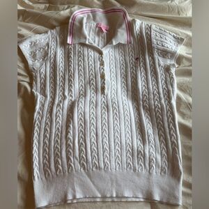 NWOT! Lilly Pulitzer White Cable Knit Top with Pink Label