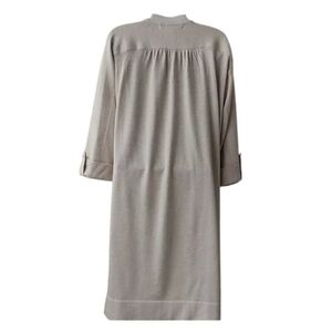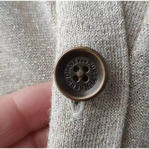 This is a Diane von Furstenberg longline cardigan jacket sweater in metallic silver, designed for women in size L. The sweater has a stylish and trendy metal theme, making it a fashionable choice for any outfit.