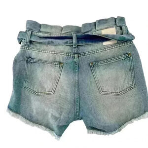 MC 1975 NWOT HIGH-WAIST Denim Belted Paper Bag Style Shorts Size 40/8