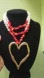 Large Gold-Tone Heart Pendant with three strands of faux red coral chips and simulated pearls.
