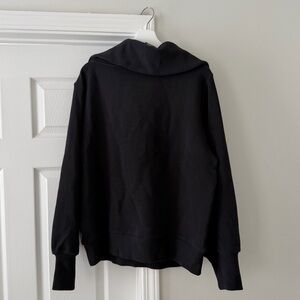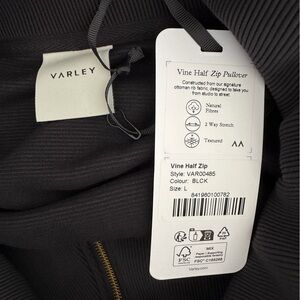 Brand new Varley vine half zip pullover in black. This versatile half-zip pullover is produced in our key Ottoman rib, with a high, oversized collar, exaggerated sleeves and a contemporary hoop zipper. Designed to be oversized, wear over leggings or sweatpants to achieve your desired look.