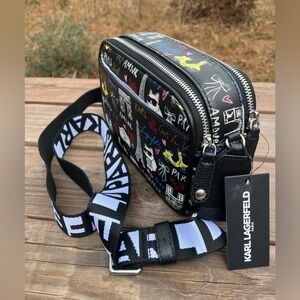 Karl Lagerfeld Paris Theme Multicolor Crossbody with Guitar Strap NWT New