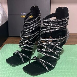 Cape Robbin Black Strappy gladiator style Heels with Rhinestones size 7 NIB