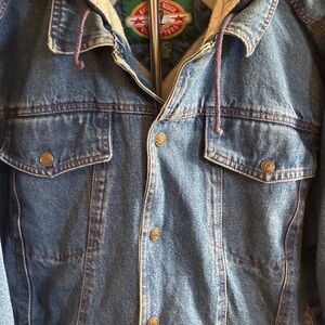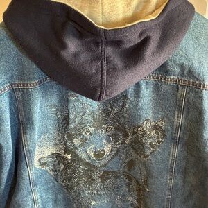 Denim Hoodie Jacket with Wolf Design