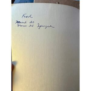 The book is in good vintage condition. The cover shows some minor shelf wear and age-related toning consistent with its age. Notably, the first page contains handwritten notes in ink regarding plant care (Feed March 20, March 24 Sprayed), which adds a bit of unique character to this gardener's reference. All pages are intact and the binding is secure. Please refer to the photos for a detailed look at the condition.
