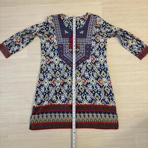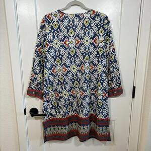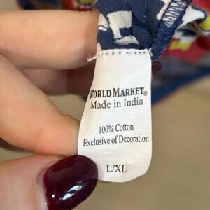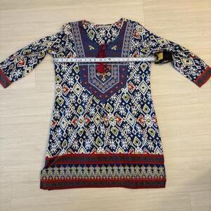 World Market Women L/XL Tunic Dress Embroidered Geometric Boho Tassel Aztec
