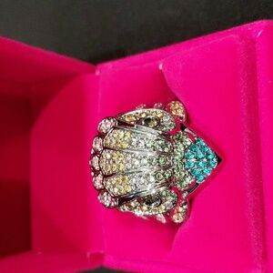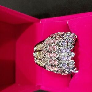 This stunning eagle ring features a dazzling array of multicolor stones, perfect for adding a touch of whimsy to any outfit. The intricate design showcases a blend of silver and colorful accents, making it a unique addition to your jewelry collection.