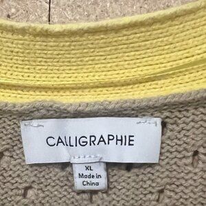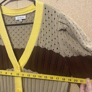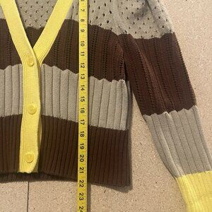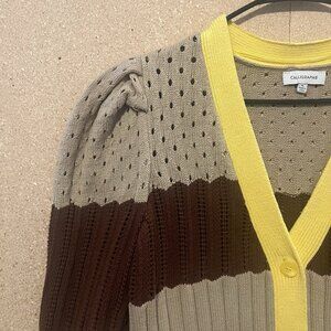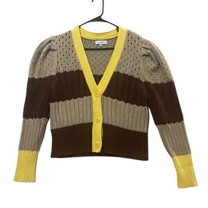 Calligraphie Women’s Cardigan Sweater Size XL Striped Button Front Puff Sleeve Brown V Neck Long sleeves