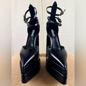 Authentic Black Platform Leather Versace Heels, Size 39, Made In Italy.