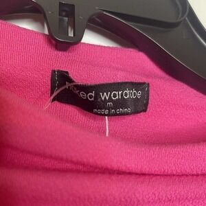 NWT Naked Wardrobe Ruched Long Sleeve Mini Dress Women's Open Back Pink Size M