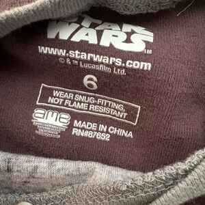 Comfortable Star Wars pajama set. Features snug fit. Ideal for fans. Dark purple color. Size 6 kids. Preloved. Bundle for discounts! #yoda #babyyoda #starwars #pajamas