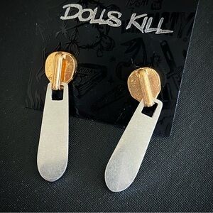 DOLLS KILL Zipper Stud Earrings in Gold and Silver