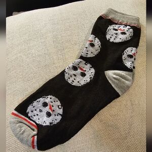 New without Tags Friday the 13th Iconic Jason Mask Crew Socks in new giftable condition no wear or callouts. Fits shoe size 7-10. Perfect for all horror movie fans! Ships from smoke-free and pet free home.