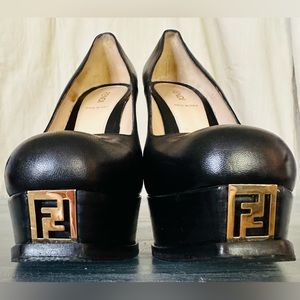 AUTHENTIC FENDI SOLD SIGNATURE FF Tips Platform Heels Shoes, Size 38, ITALY.