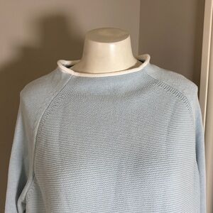 Alice Walk The Cotton Mock Neck ICE BLUE Peruvian cotton Roll Sleeve Sz L