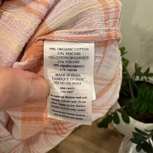 Faherty lightweight plaid button-front shirt crafted from a soft organic cotton blend. Features a relaxed fit, classic collar, partial button placket, and gently curved hem. Fabric has a breathable, slightly textured feel that works year-round. New with original tags attached.