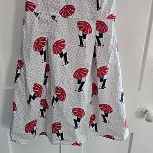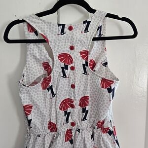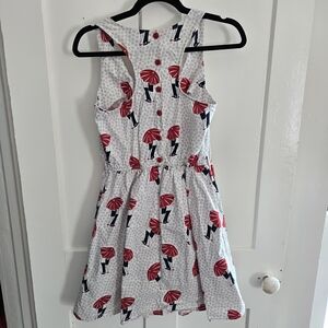 Retrolicious Red Umbrella Print Polka Dot Dress, Size Medium, Love, Made in USA