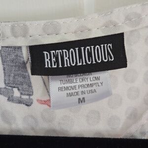 The Retrolicious Red Umbrella Print Polka Dot Dress in size medium is a cute and playful outfit perfect for various occasions such as casual outings, parties, or even workwear. Made of comfortable cotton fabric, this A-Line dress features a V-neckline, button closure, and a button-up back detail. The dress is adorned with cute polka dot prints and a love-themed red umbrella design, adding a touch of charm and cuteness to your wardrobe. Ideal for the summer and spring seasons, this midi-length dress is a stylish choice for women who love a retro-inspired look. There is a minor red tinted spot on the bottom of the dress (pictured) but is very light and hardly noticeable. Such a cute dress!! Please see pictures for reference. Belt is not included but there are belt loops if you wish to accessorize. Thanks for looking!