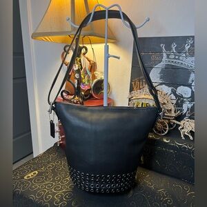 COACH 2014 Bleecker Grommets Mini Duffel Bag Black Leather 32386 Rare