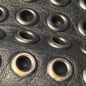 Polished grommets make a statement on this darling mini, transforming it with a chic downtown edge. Crafted in smooth leather with a zippered closure and a strap that adjusts for shoulder or crossbody wear.