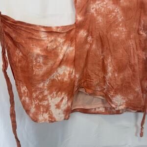 Altar’d State Cotton Linen Tie Dye Faux Wrap Sleeveless A Line Mini Dress Small