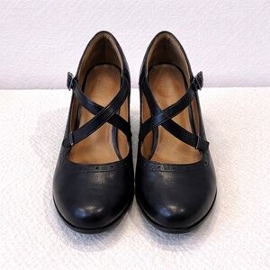 Clarks Black Leather Mary Jane Block Heel Size 8 EUC