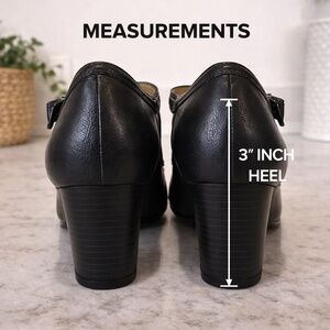 Classic Clarks black leather Mary Jane block heels in size 8.