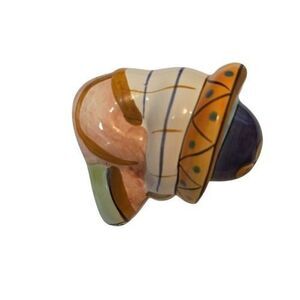 Hand-painted Mexican ceramic salt & pepper shakers in a sombrero figure style. Bright, glossy glaze with detailed painted design. Includes both shakers as shown. Great for kitchen decor, themed dining, or collection display.
