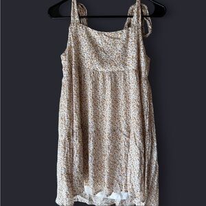Adorable floral dress with bow straps. Cream and brown pattern. Perfect for casual outings.