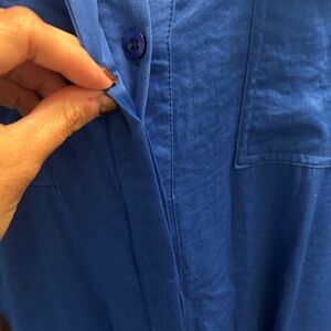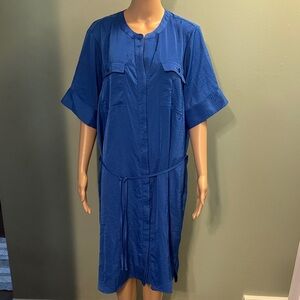 Stylish blue button-up dress with short sleeves and a tie waist. Worn once no holes or stains! Size XXL