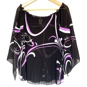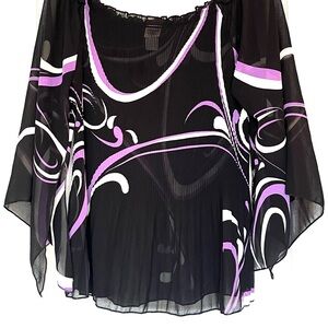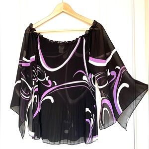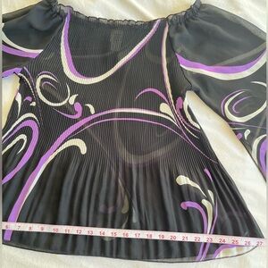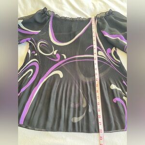 VTG C.O.C. USA Micro Pleated Striped Plisse Top Black Purple, XL Avant Garde Y2K