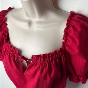 MINKPINK Hadley Red Peasant Milkmaid Puff Sleeve Crop Off Shoulder Prarie NWT